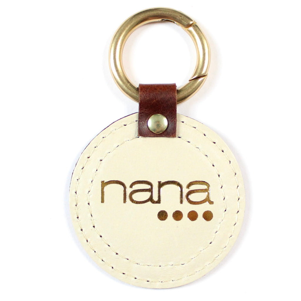 these are super handy. attach to your keys or to any of your nana bags. fun, colorful and sustainably made. each one features a brass spring-gate o-ring clip, special textiles and sustainably sourced leathers. the back of each clip has a gold stamped nana logo on cream leather. finished edges.