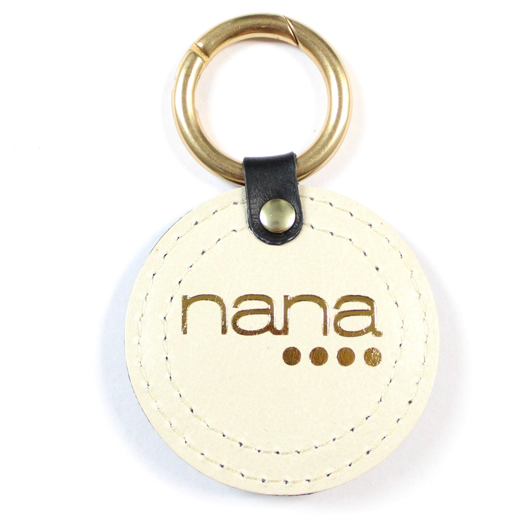 these are super handy. attach to your keys or to any of your nana bags. fun, colorful and sustainably made. each one features a brass spring-gate o-ring clip, special textiles and sustainably sourced leathers. the back of each clip has a gold stamped nana logo on cream leather. finished edges.