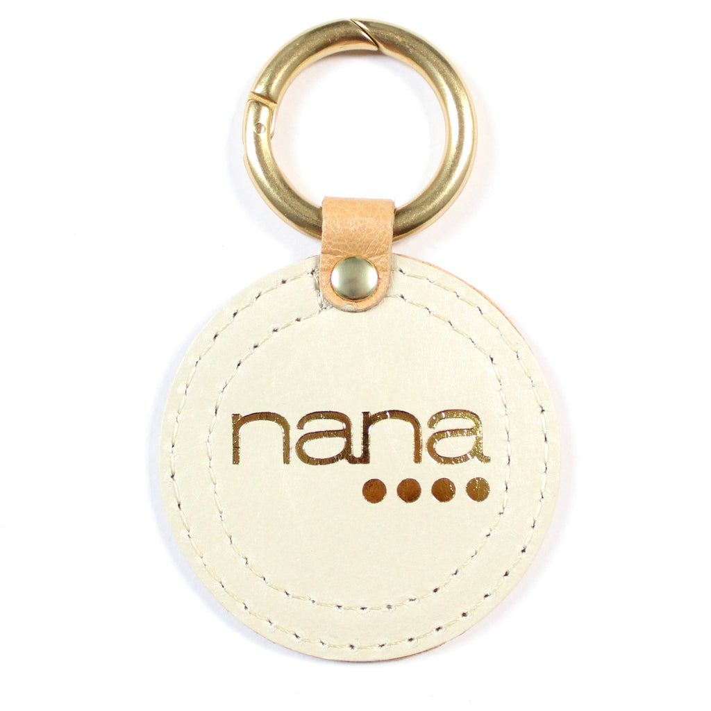 these are super handy. attach to your keys or to any of your nana bags. fun, colorful and sustainably made. each one features a brass spring-gate o-ring clip, special textiles and sustainably sourced leathers. the back of each clip has a gold stamped nana logo on cream leather. finished edges.