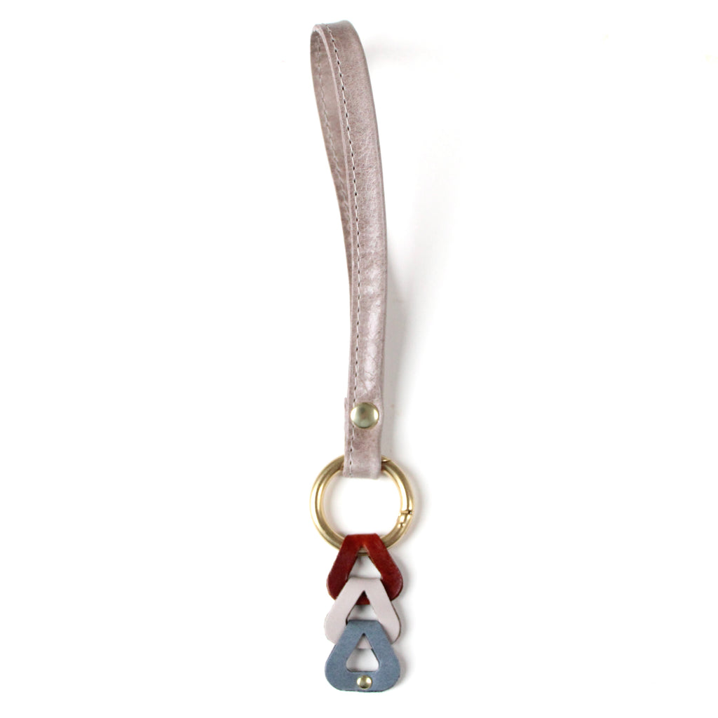 created to be bold and functional statement pieces. each one has a leather wristlet attachment, and a unique combination of interlocking leather pieces to celebrate the beauty of color! the brass spring-loaded o-ring can easily be opened to add your own key ring. you can also opt to clip to your favorite everyday bag.