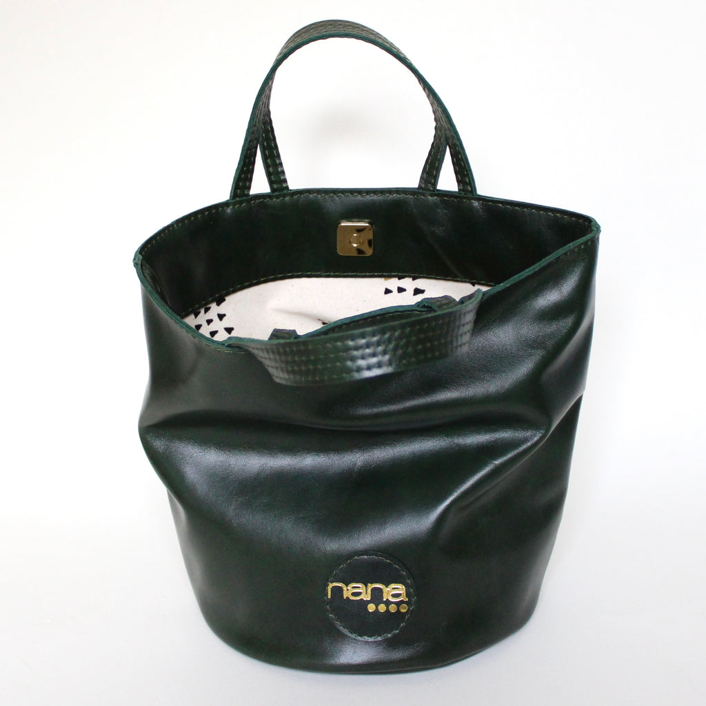 the little bucket is simple, timeless and pretty. each bag has double short handles for a feminine grab-and-go vibe. the interior is fully lined in a coordinating print, and a magnetic snap closure keeps the contents secure, while still allowing easy access to your goods. the special cut-out opening at the base of each handle is created for a unique aesthetic, but also plays a secondary role, allowing you to add your own bag clip (nana makes some lovely ones!) for extra oomph.